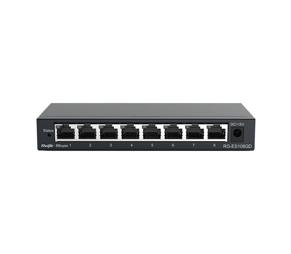 Ruijie Real-easy Series RG-ES105D/ RG-ES108D/ RG-ES105GD/ RG-ES108GD are cost-effective unmanaged access switches with metal casing designed for SMEs. The RG-ES100 Series supports plug-and-play without requiring any configuration, which can meet the requirements of various scenarios such as wired, wireless and surveillance networks.